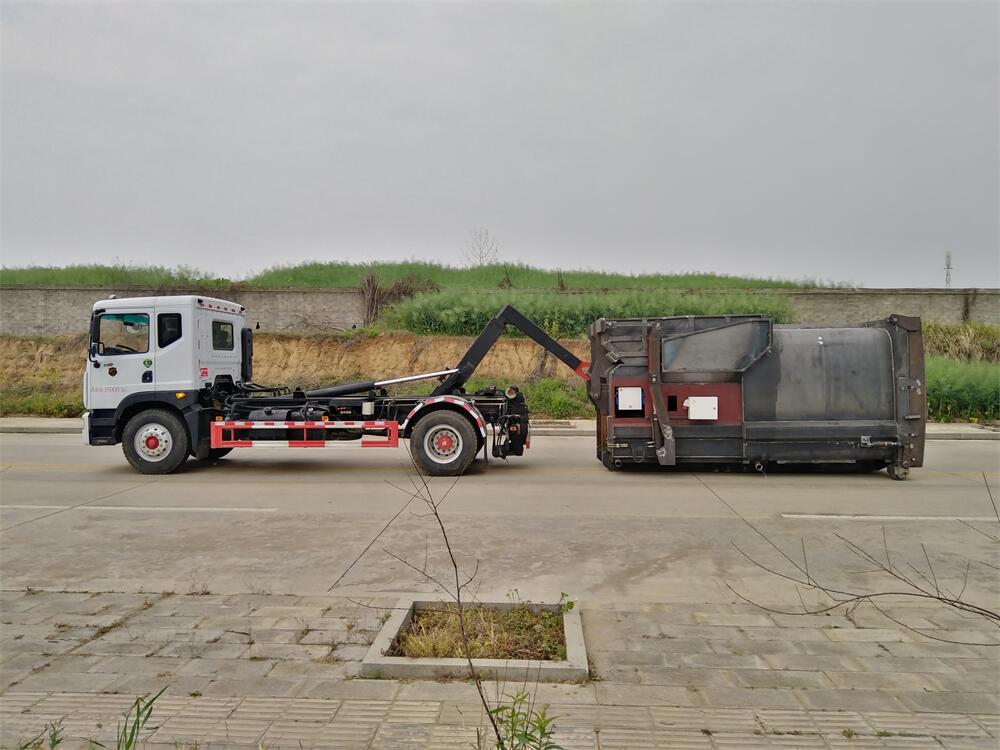 勾臂式垃圾車(車廂可卸式垃圾車)介紹: 車廂可卸式垃圾車又叫拉臂式垃圾車,是一種采用高新設計可伸縮的鉤臂,實現(xiàn)垃圾廂的二次吊裝,自吊上放下,可自行傾倒垃圾的環(huán)衛(wèi)設備。 拉臂式垃圾車結構簡單,操作穩(wěn)定方便,裝卸效率高,機械化程度高,節(jié)省人力。鉤臂垃圾車一車可帶多個垃圾廂,在裝卸的運輸過程中可有效地避免二次污染。 拉臂垃圾車采用高新設計可擺動的鉤臂,垃圾箱由框架、開啟油缸、滑輪、后門和若干加強框架與鋼板焊接而成。調換貨廂快捷方便,貨廂上帶蓋(倒垃圾時可翻開),鉤臂垃圾車垃圾廂體可選用碳鋼、不銹鋼材質、內部采取環(huán)氧樹脂防腐處理,改裝部分與原車底盤為可分離式,維修方便且保持了原車的機動性及行駛性能。
