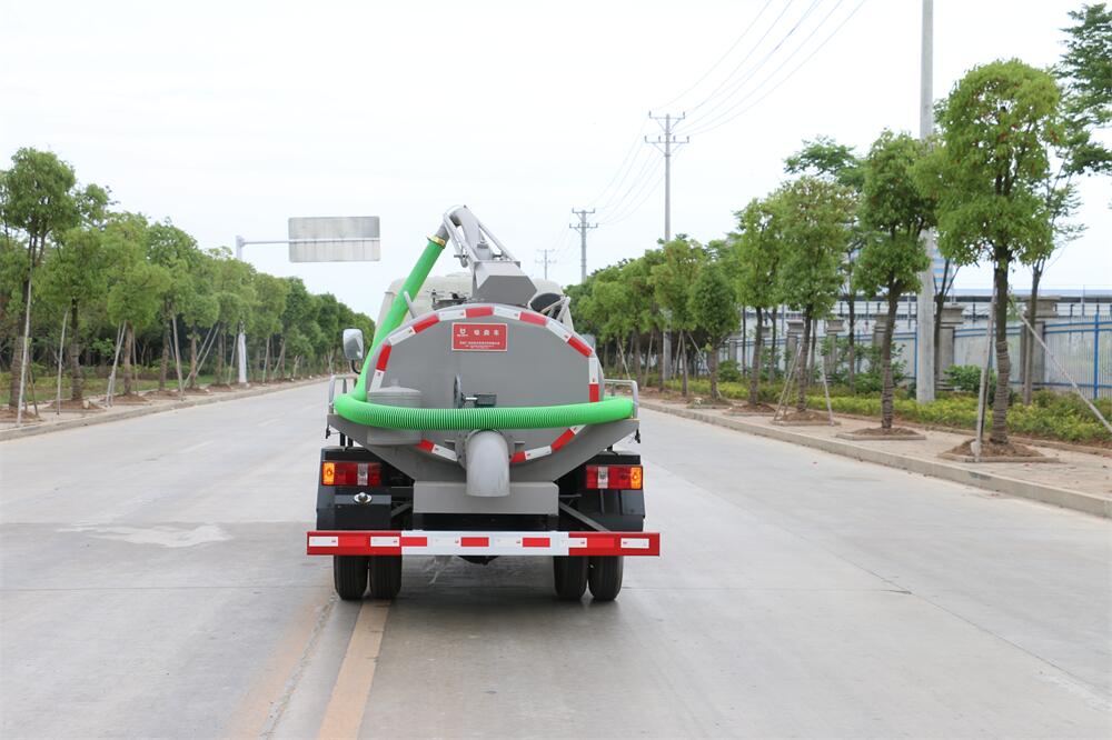 上裝配置:5T真空油泵(SK-9水循環泵), 油水分離器 ,防溢閥,視糞管,洗水箱,吊桿座(可270度旋轉),尾部一個220排糞口帶駕駛室操作,一根6米吸糞管帶陰陽端快接頭。