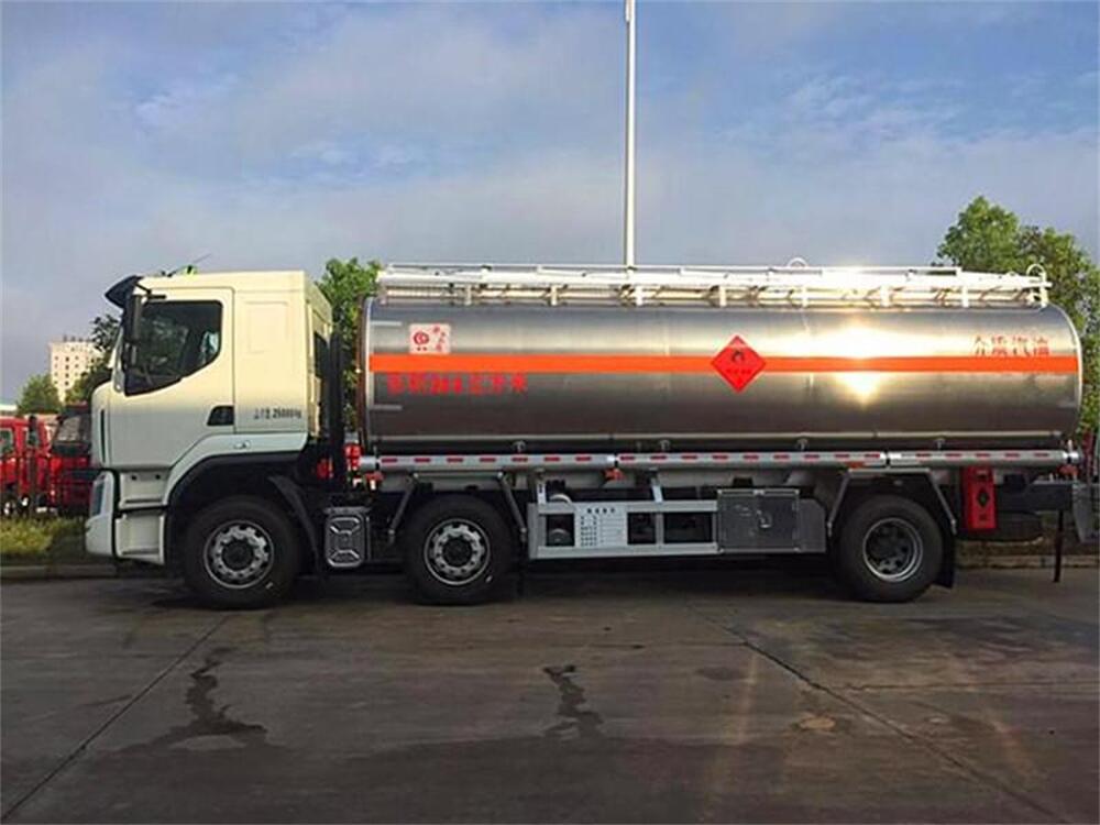 2.上裝配置:嚴格按照公告尺寸制作,罐體采用鋁合金(5083鎂鋁)制作,罐體容積為24.4方,實際容積26立方,上戶噸位:16370KG,單倉,介質:汽油,帶全套歐標(二個歐標罐口,一個海底閥,一個下裝油口,一個廢氣回收接口,一個防溢流探桿及探桿座),帶油車專用自吸自排泵,下裝油位置按標準。一個工具箱,帶靜電卷盤,帶折疊護欄,其余按標準制作,兩根與罐體等長輸油管,兩個滅火器,其余按廠內標配。保證罐體及整車外形尺寸按公告制作。油漆:不做漆,貼反光帶,滿貼反光條,三個“易燃液體”標,安全告示