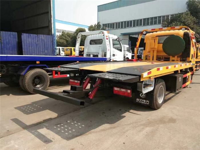 該車平板長度4.2米,寬2.3米,平板采用新型一次性成型帶孔沖壓板或4個厚花紋板,尾板可選用翻轉板或新款抽拉式尾板,尾板長1.2米,3噸上裝,配液壓絞盤4噸,21米鋼絲繩,雙側聯動操作。