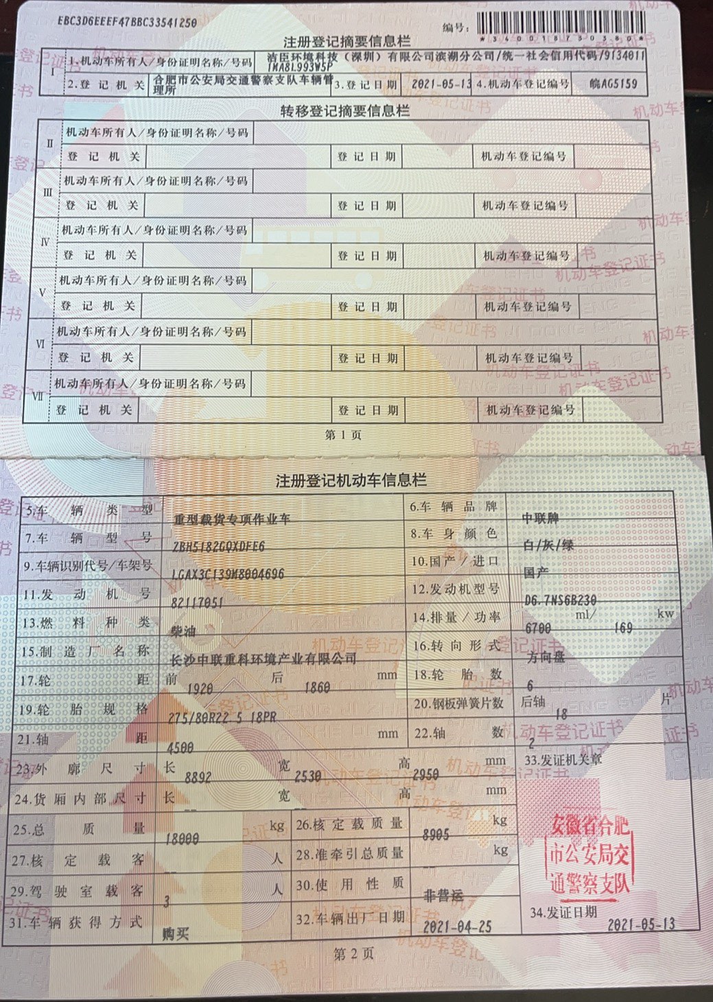 二手國六東風天錦清洗車 2??年份:2021年5月 3??發動機:康機230馬力,國六 4??底盤配置:東風天錦底盤,六檔變速箱,4500軸距,275真空胎,
