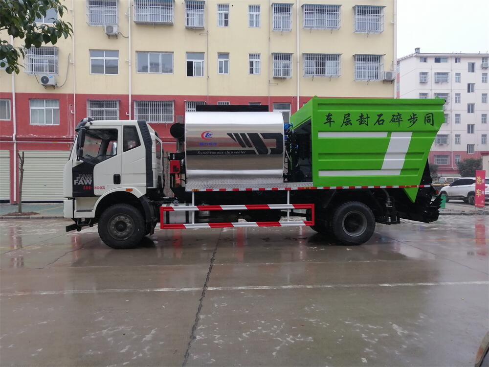 解放單橋同步碎石封層車工作實(shí)拍圖片