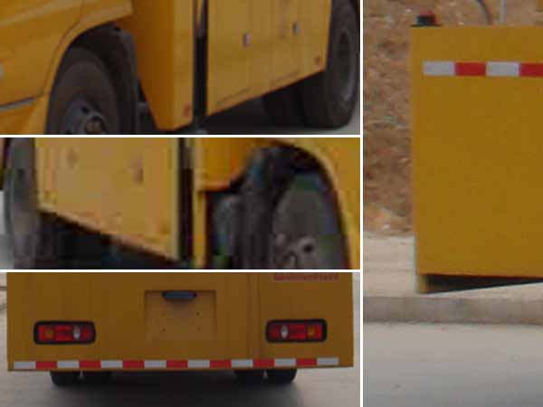 隨底盤選裝駕駛室;前伸690mm,后伸270mm;僅采用底盤4700mm軸距;ABS型號:3631010-C2000,生產廠家:東科克諾爾商用車制動系統(十堰)有限公司;側面防護及后下部防護裝置材料材質:Q235,側面防護及后下部防護裝置為整體式結構;后下部防護裝置離地高度:500mm.